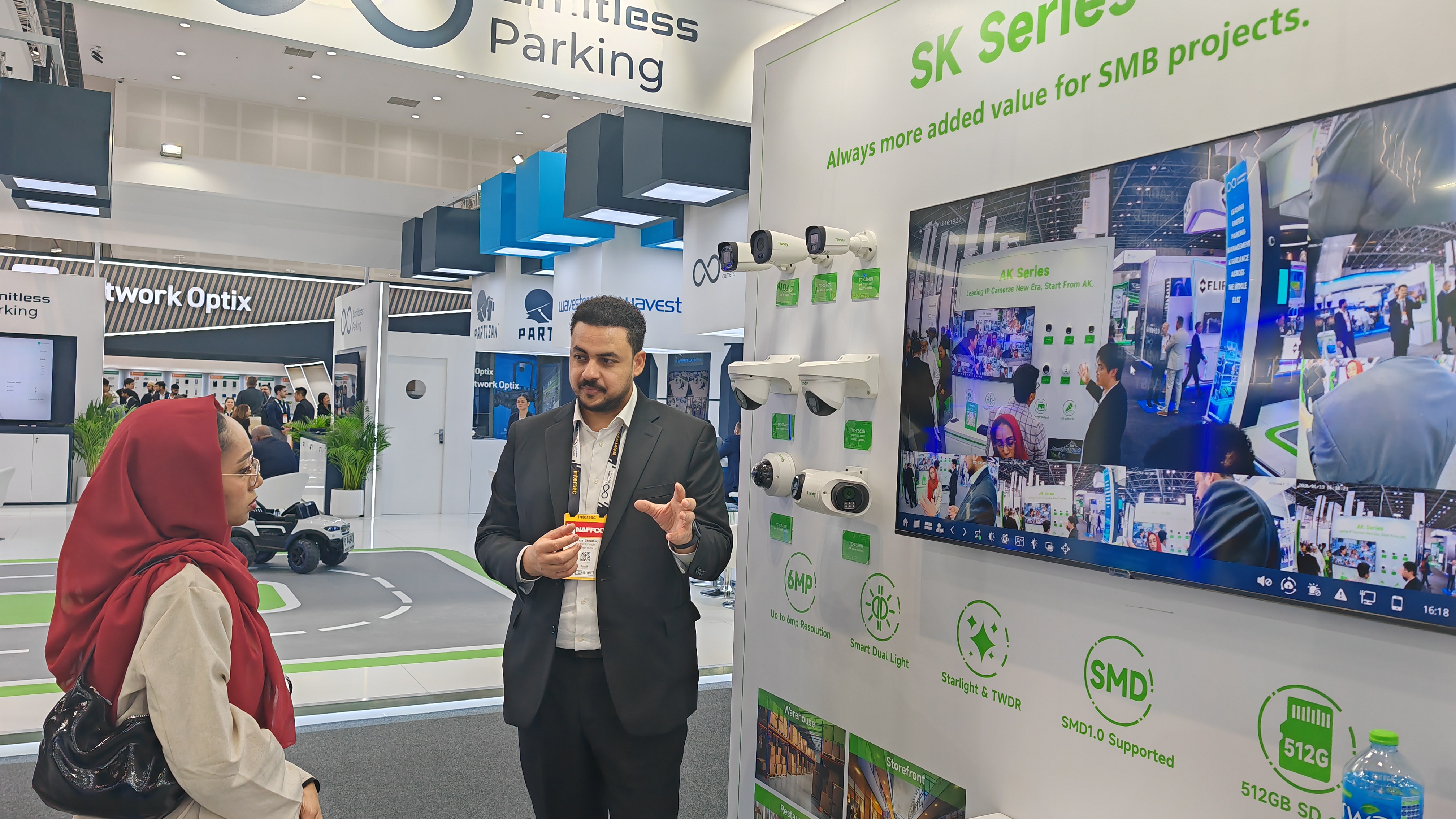 为应对全球市场多元化的需求,天地伟业本次重点展示了60余款核心产品,全面覆盖家用摄像机、项目型摄像机、AI大模型录像机、All in One服务器四大产品线,致力于提供从基础安防到高端智慧城市建设的全栈式解决方案。各地客户结合自身需求关注着不同产品,但都不约而同地为天地伟业的产品实力点赞。欧洲客户对LK系列在复杂光线下的出色表现与AI智能分析能力表示赞赏;非洲客户对无电无网摄像机兴趣浓厚;海湾地区工程师则更关注SK、LK系列在极端环境下的稳定性以及All in One服务器的便捷部署。此外,Tian系列及K系列所体现的高效中心化管理能力,也吸引了众多寻求消费升级与商业效能提升的客户。